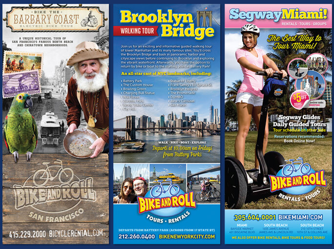 Blending a unique local voice with baseline design standards, we create distinctive marketing materials that generate leads and enhance enjoyment of the bicycle tourism experience. Bright colors, fun copy, and bold photography combine to capture tourist mindshare as well as DMC and tour group requests.