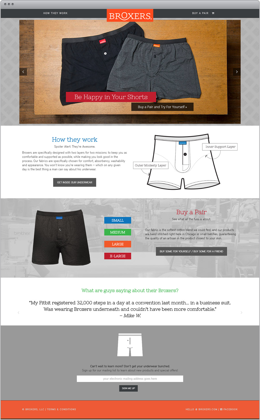 Broxers is an upscale brand of mens underwear that disrupts the normal model of cheap, hidden, disposable undergarments. Comprised of an inner “support” layer and an outer “modesty” layer, Broxers bring all-day style to a hum-drum market. Medium Rare is an equity partner in this startup business, rethinking how comfort and functionality can improve everyday life and add a layer of fun and style to men’s fashion choices.